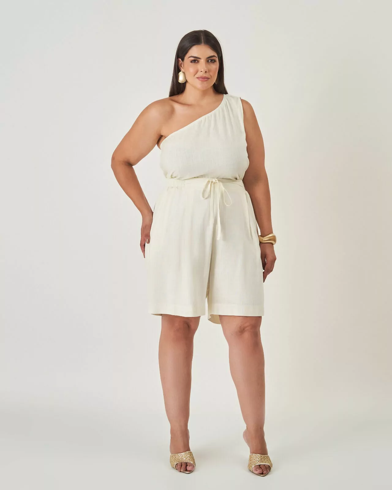 Blusa alongada em viscose com recorte assimétrico, um ombro só. Acompanha faixa para amarração.