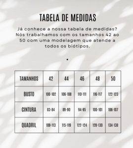 | Tamanhos | 44, 46, 48, 50, 52, 54 |