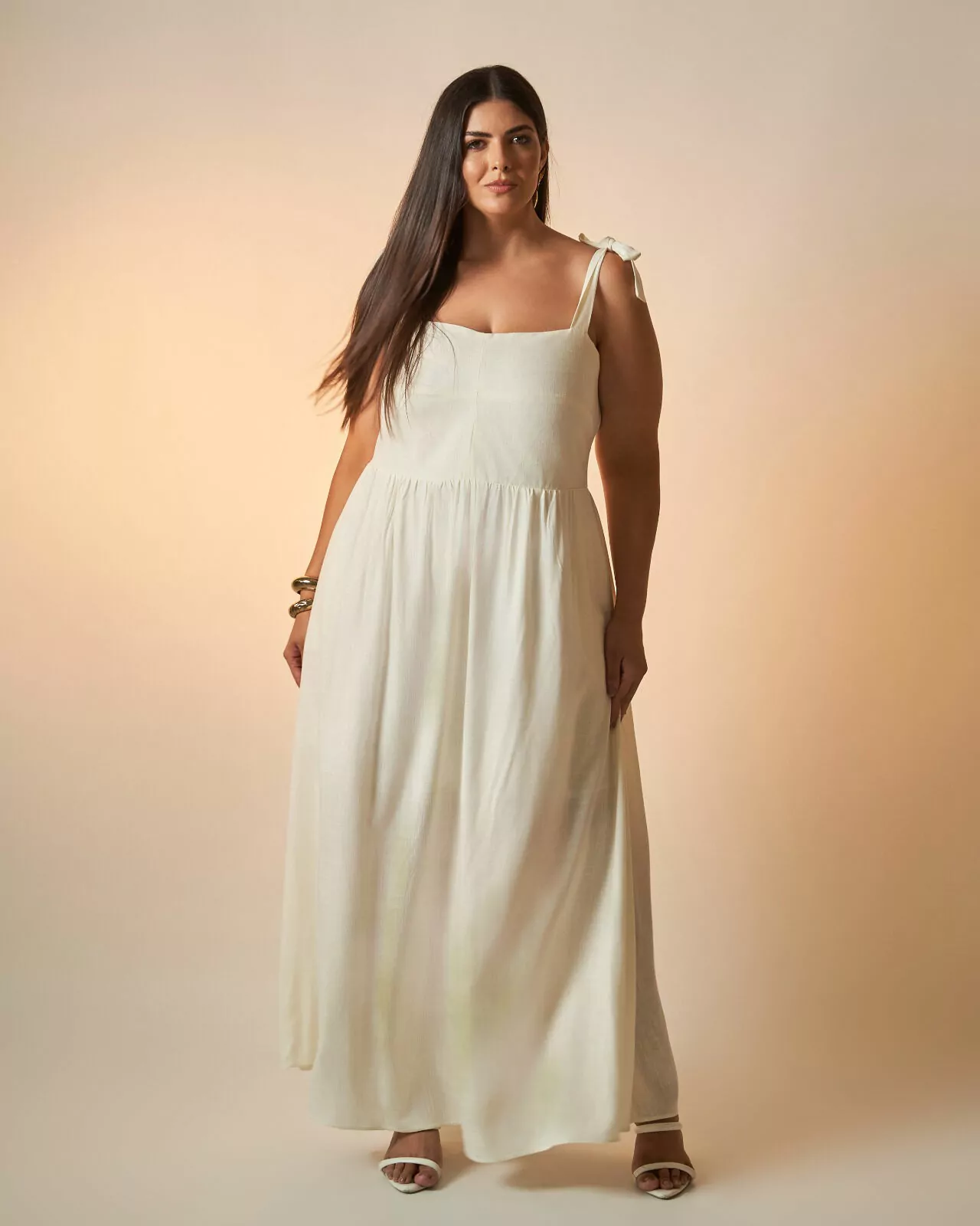 Vestido midi alongado com alças para amarração , possui recortes no busto e leve franzido na saia. Possui elastéx costas e forro.